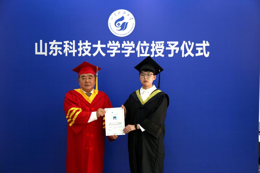 仪式上,身着学位服的毕业生一一上前,姚庆国与每一位毕业生亲切握手,为他们拨穗并授予学位证书。学院党委书记李双立,党委副书记、副院长陈猛,团委书记樊玉华及毕业生辅导员祝月盈、孟凡宝、苗成旭同毕业生深情寄语,为他们整理衣帽,送上祝福。