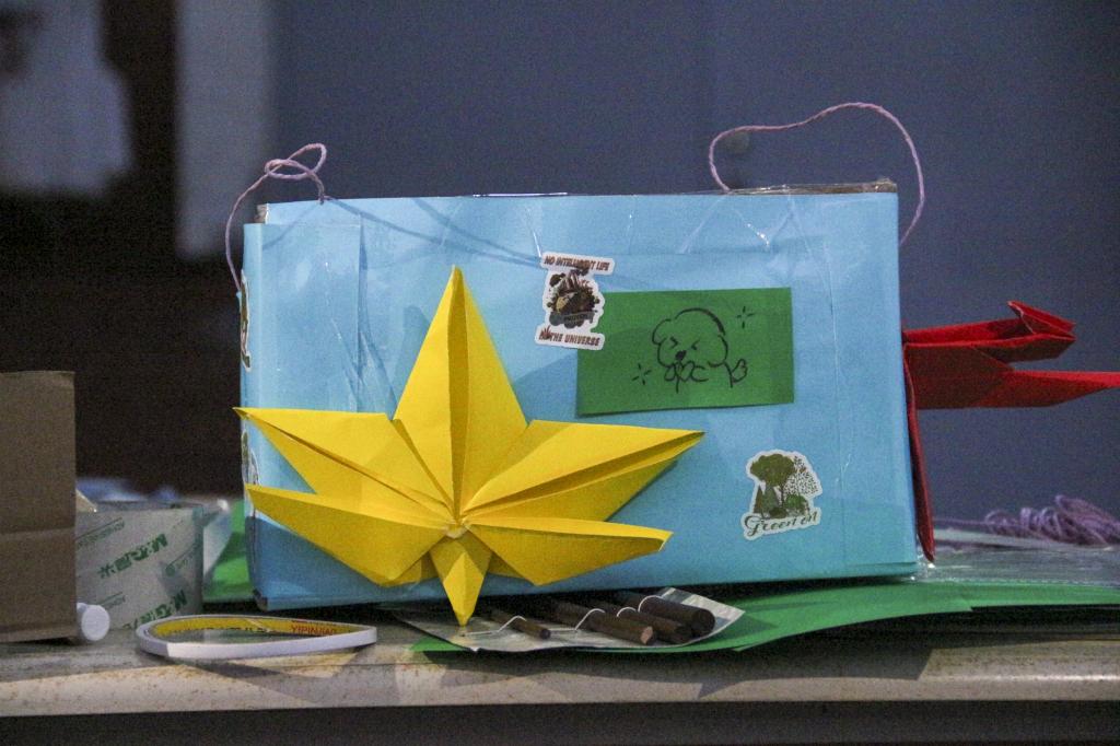 活动伊始,繁星广场西北角便呈现出忙碌而有序的景象。同学们带着提前收集的各类闲置快递纸箱纷至沓来,这些平日里可能被随手丢弃的包装盒,此刻成为了创意实践的核心材料。主办方贴心地为参与者准备了剪刀、环保颜料、画笔、胶水等辅助工具,确保活动既丰富多彩又安全环保。
